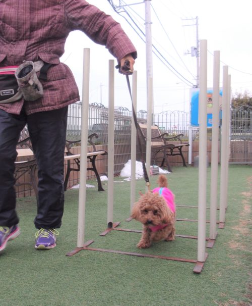 伏臥待て1周! 回れ! イス作業、アップ! ポール通過!
