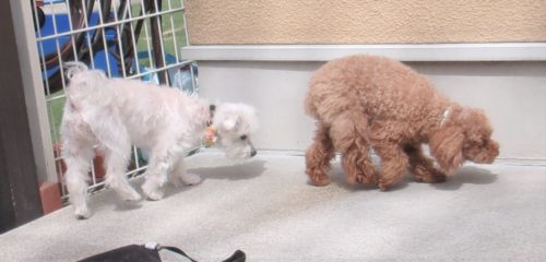 マズルコントロール! エサ待て! お泊り保育! ブラックのT.プードル ほとんどみえなくてすみません(>_<)