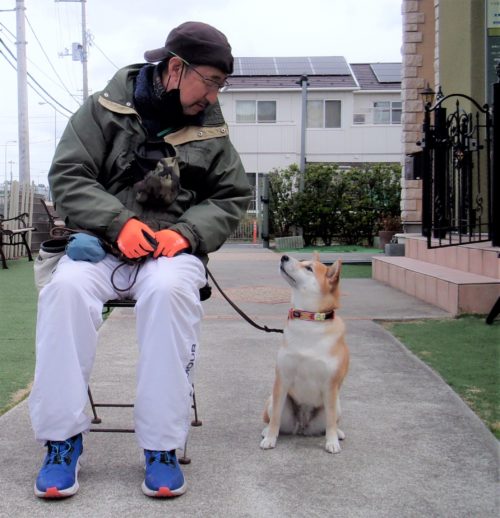 行進並びに停座! 立止待て大きく1周! ラリオビ、ラウンド! イス作業、脚側停座! センター(対面停座)!