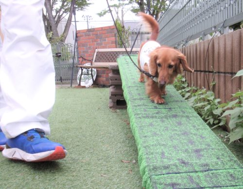 片手歩行! 呼吸を合わせて歩き出し! 伏臥から立止! グレーチング通過! 遠隔、停座から伏臥! スロープ通過!