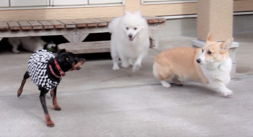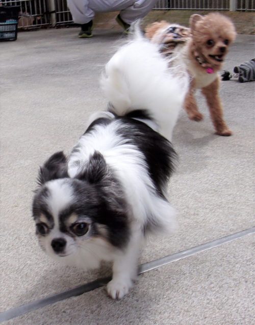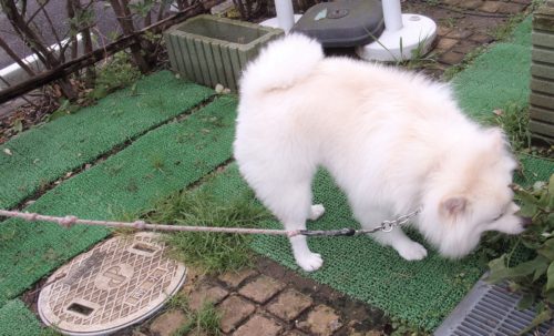 左折! 「にっこ」(地面の匂いを嗅いでいいよ)!