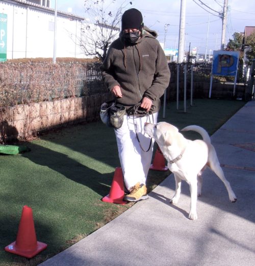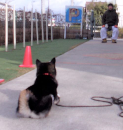 伏臥待て大きく1周! 立止待て大きく1周! 往復障害(複路)! 行進中の停座! イス作業、遠隔、停座から伏臥! 休止! コーンスラローム!