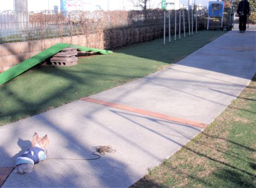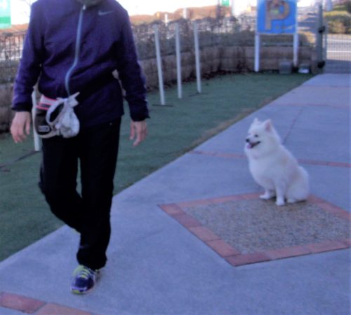 「にっこ」(地面の匂いを嗅いでいいよ)!