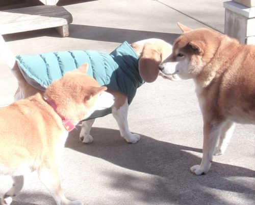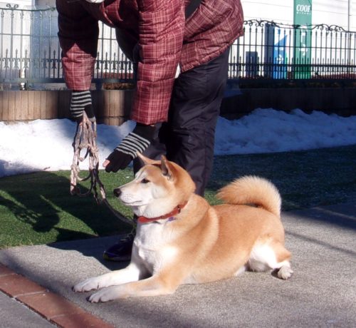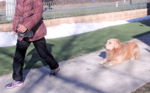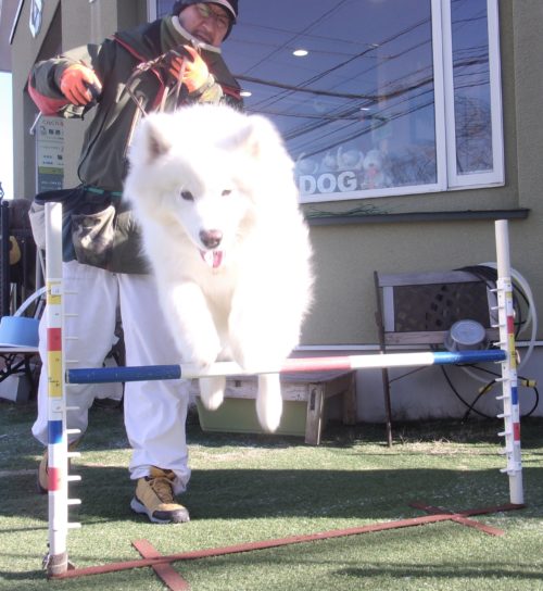招呼! 遠隔、伏臥から立止! 停座待て1周! 行進中の伏臥! ハードルジャンプ(45㎝)! 停座から伏臥! 「にっこ」(地面の匂いを嗅いでいいよ)!