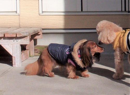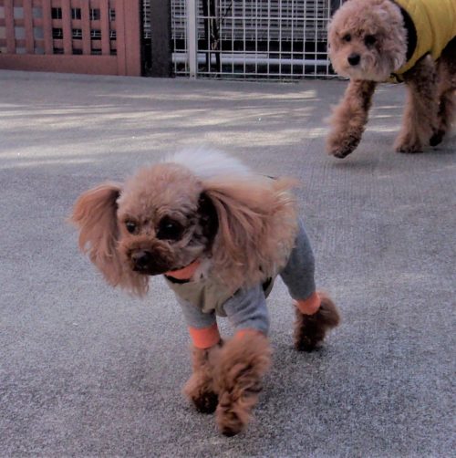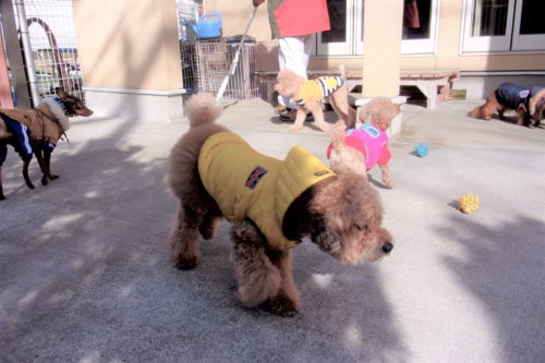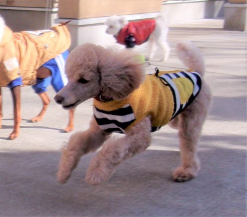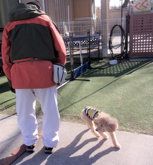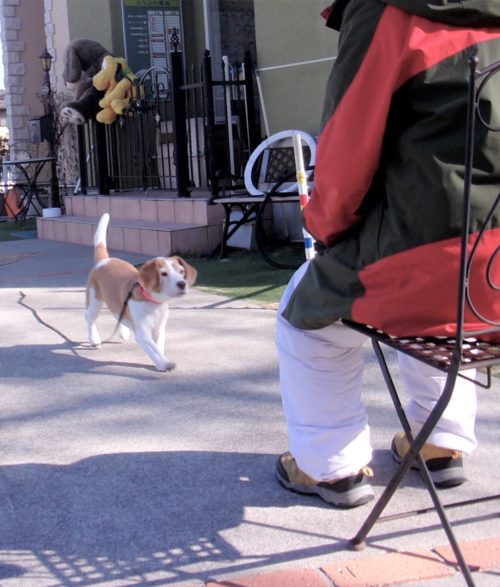 呼吸を合わせて歩き出し! 伏臥から停座! 行進中の停座! 行進中の伏臥! 遠隔、停座から伏臥! 速歩! ドイツターン! 脚側停座、一歩後ろ! イス作業、招呼!