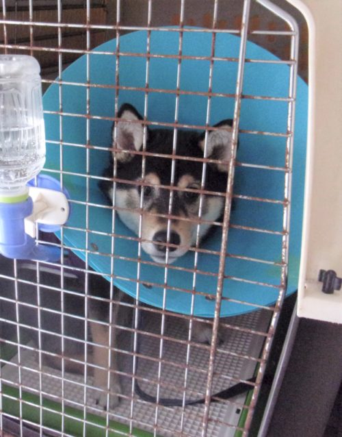 エリザベスカラー! ボディコントロール(伏せ)!