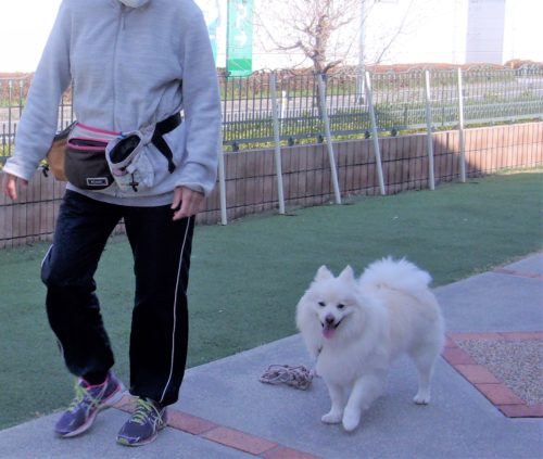 桜の咲く公園で訓練後 お土産を持って帰ってきたノーム君 🌸🌸🌸