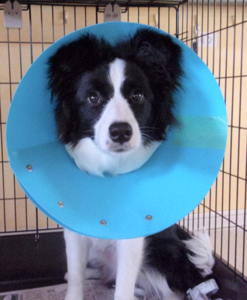 エリザベスカラー! ボディコントロール(寝ろ)! お友達デビュー!