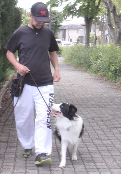 歩行訓練! 停座待て1周! 立止待て離れて30秒! 伏臥待て大きく1周! 片手歩行!