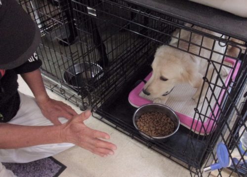 ボディコントロール(伏せ)! エサ待て!