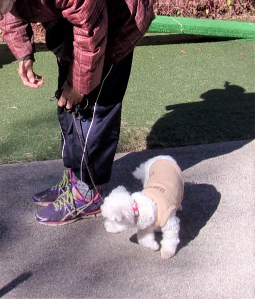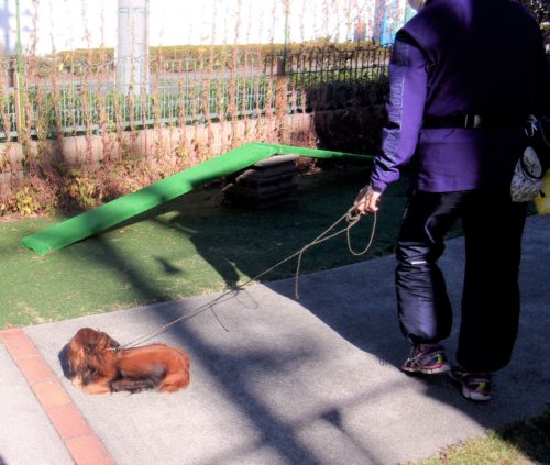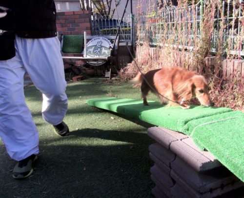 伏臥待て1周! 立止待て離れて30秒! お焼香歩き(アイコンタクト)! 「にっこ」前のアイコンタクト! ラリオビ、ラウンド! スロープ通過! イス作業、招呼!