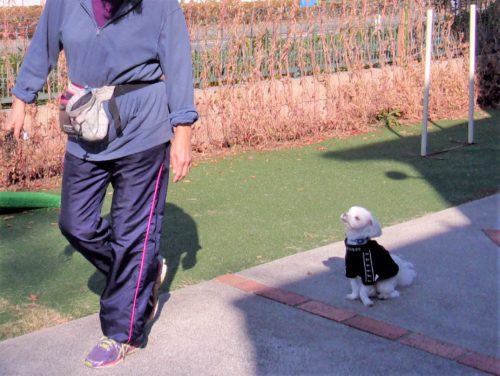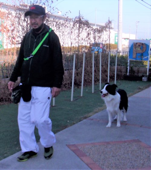 行進中の停座! 行進中の立止! 休止! 「にっこ」(地面の匂いを嗅いでいいよ)!