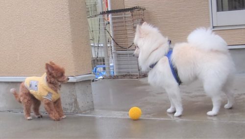 ボディコントロール(伏せ)! ハウス! お友達デビュー!