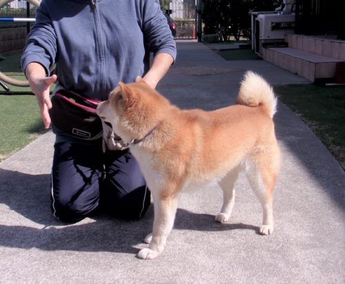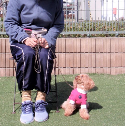 据座(停座待て離れて30秒)! 脚側歩行! 地べた作業、停座から立止! 地べた作業、立止から停座! 障害飛越(60㎝)! イス作業、立止から停座!