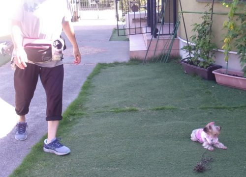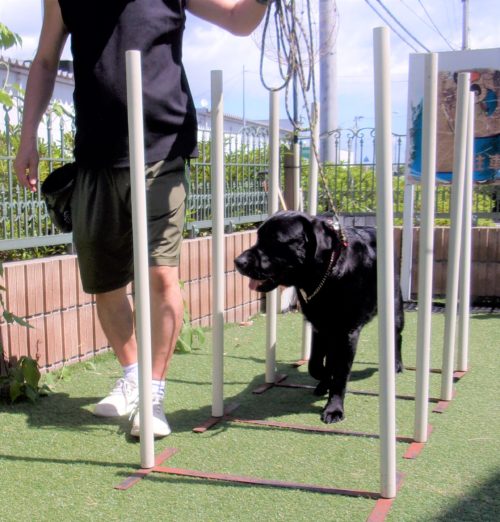 脚側行進! ポール通過! 伏臥待て1周!