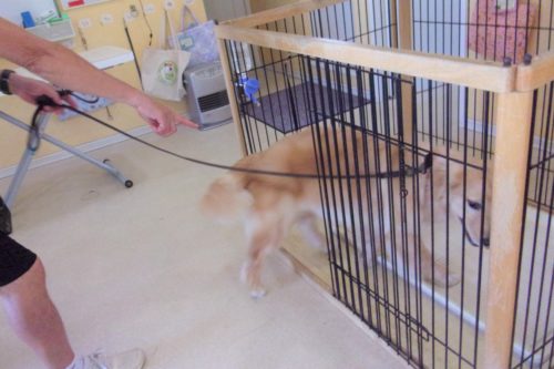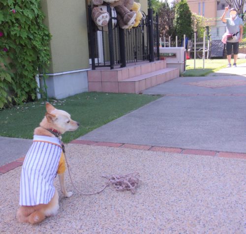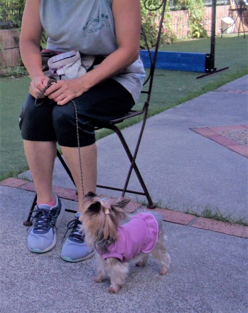 遠隔、立止から停座! イス作業、停座から立止! 「にっこ」(地面の匂いを嗅いでいいよ)!