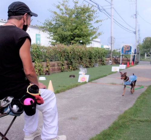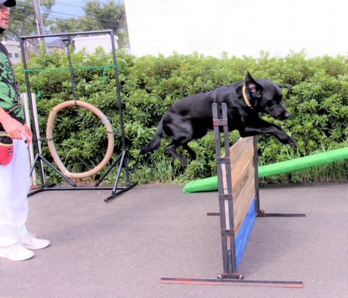 お焼香歩き(アイコンタクト)! 伏臥から呼吸を合わせて歩き出し! 障害飛越(70㎝)! ドイツターン! イス作業、招呼!