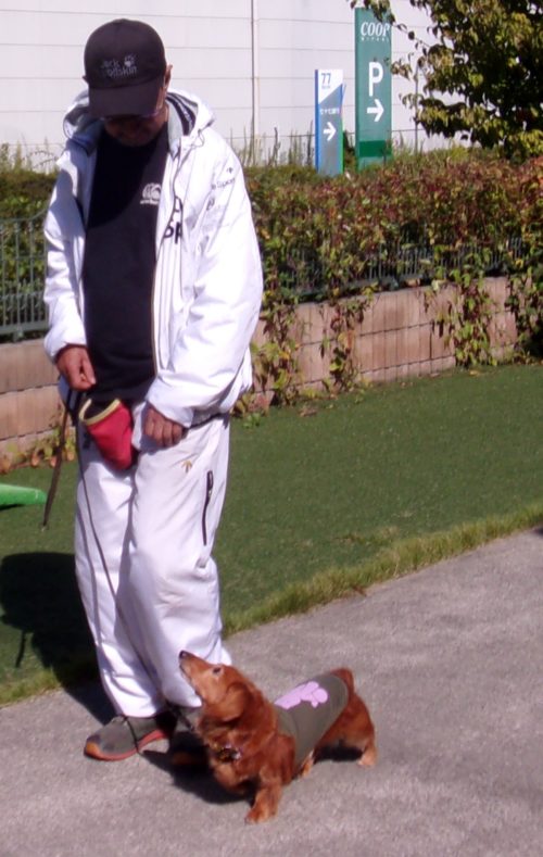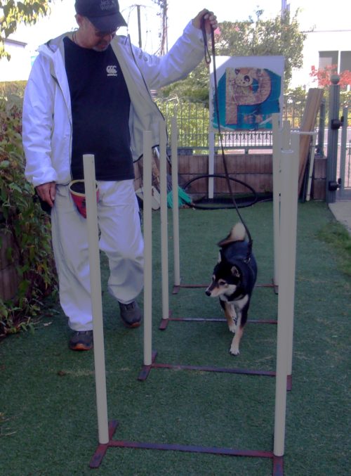 停座から立止! 歩行訓練! 立止から停座! ポール通過! 休止! 地べた作業、ラウンド!