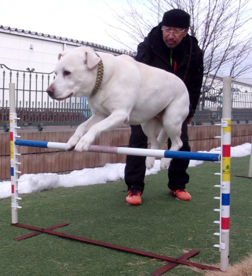 行進並びに立止! 行進並びに伏臥! 脚側行進! ハードルジャンプ(50㎝)!