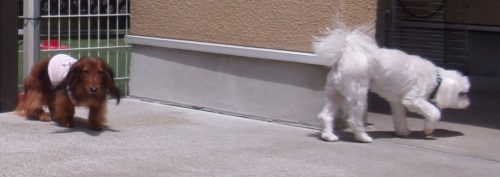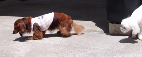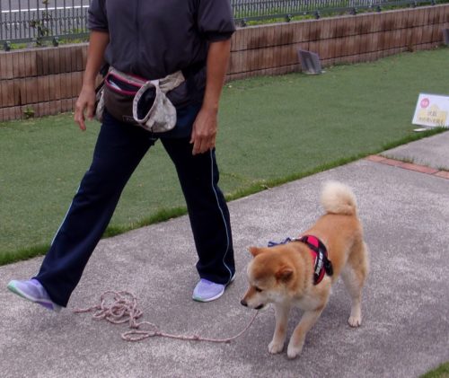 呼吸を合わせて歩き出し! 遠隔、立止から停座! 立止から伏臥! 緩歩! 伏臥から停座! 障害飛越(40㎝)! 行進並びに立止! 立止から停座! グレーチング通過!