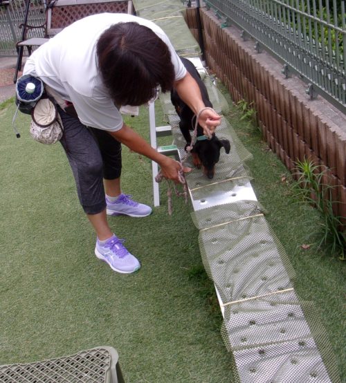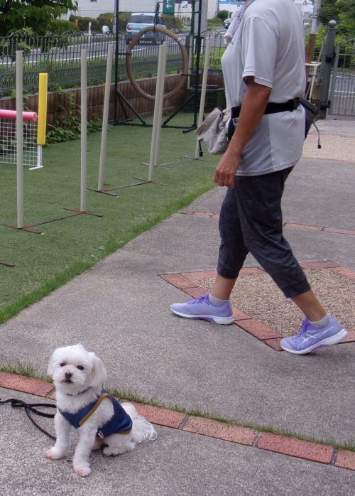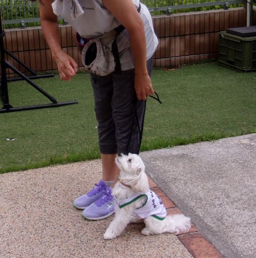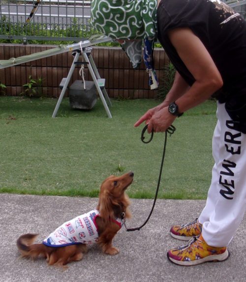 停座から伏臥! 呼吸を合わせて歩き出し! 停座待て1周! 招呼! 立止から停座! 伏臥待て大きく1周! シーソー通過練習! ラリオビ、センター(対面停座)!