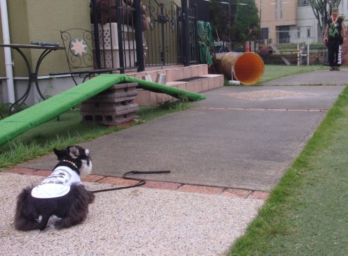 停座待て大きく1周! 遠隔、停座から伏臥! ハードルジャンプ(20㎝)!