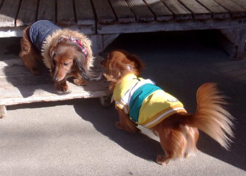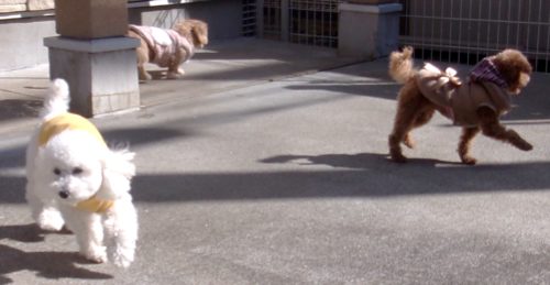 行進中の伏臥! Uターン! 遠隔、停座から立止! 遠隔、停座から伏臥! センター(対面停座)! 停座から立止! ポール通過!