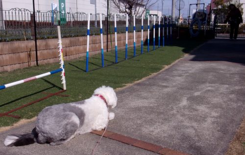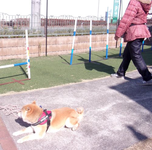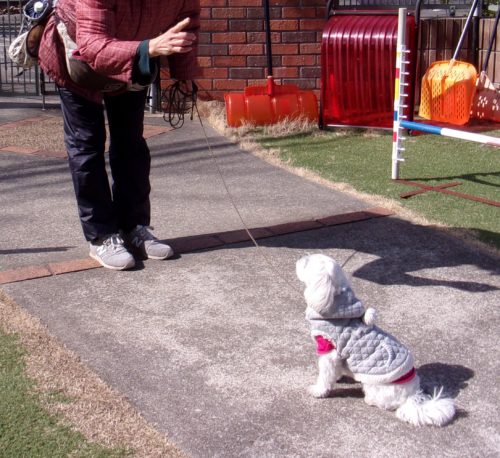 伏臥待て1周! スロープ通過! 遠隔、立止から停座! Uターン! 行進中の停座! 遠隔、立止から伏臥!