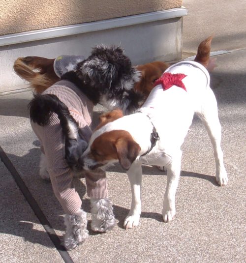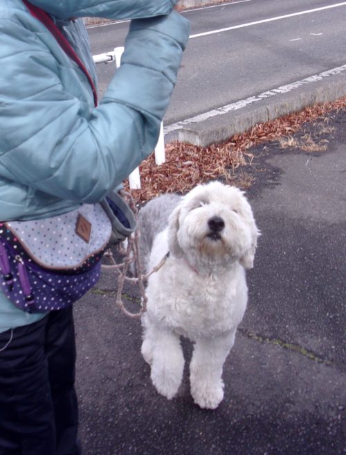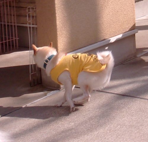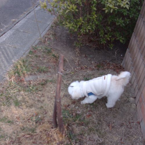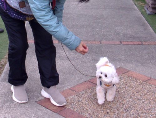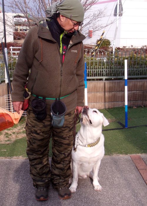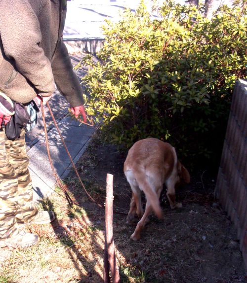 「にっこ」(地面の匂いを嗅いでいいよ)!