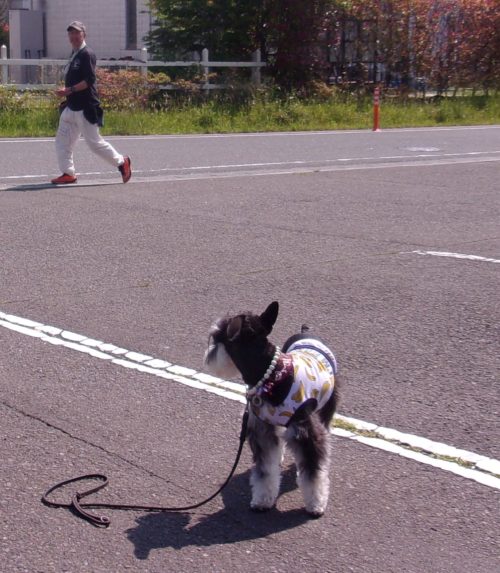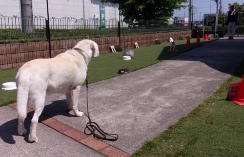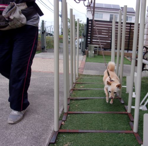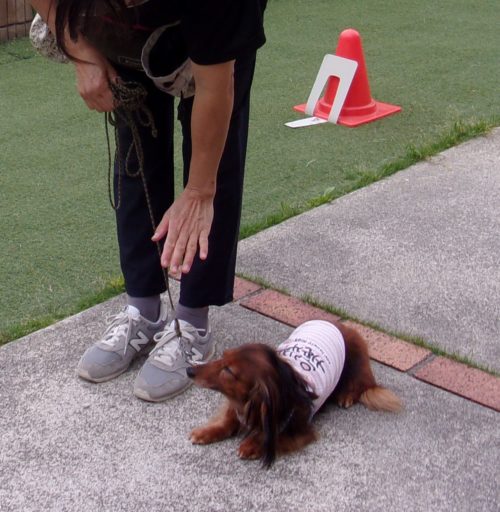 「にっこ」(地面の匂いを嗅いでいいよ)!