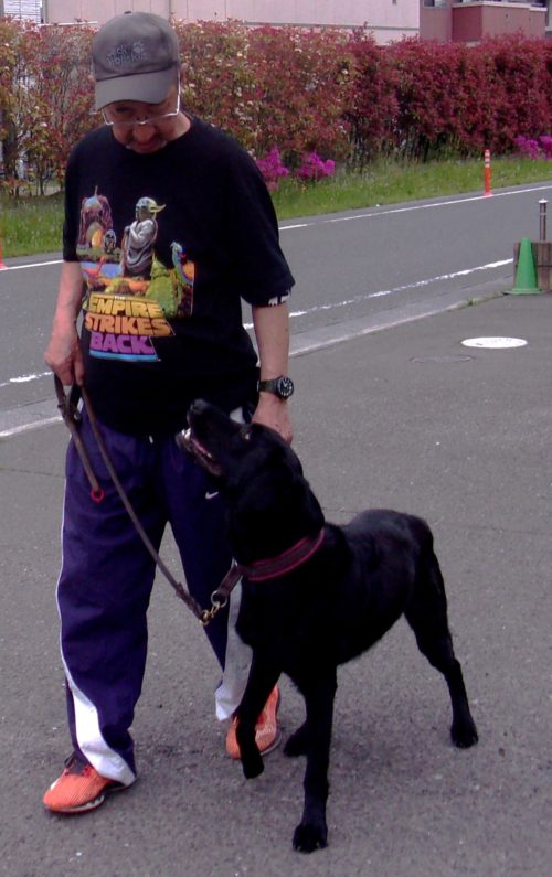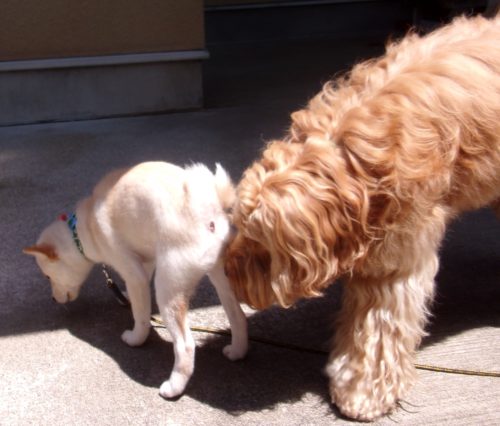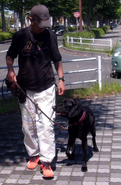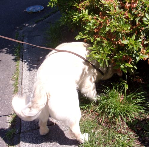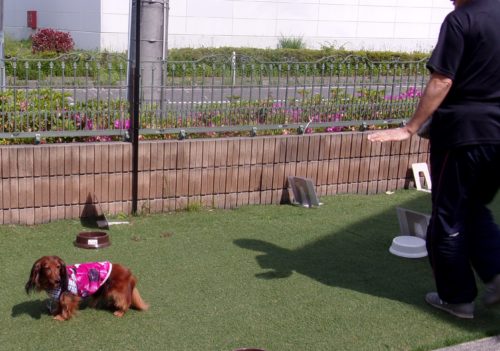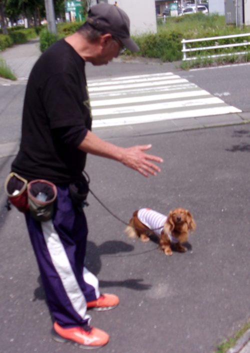 「にっこ」(地面の匂いを嗅いでいいよ)!