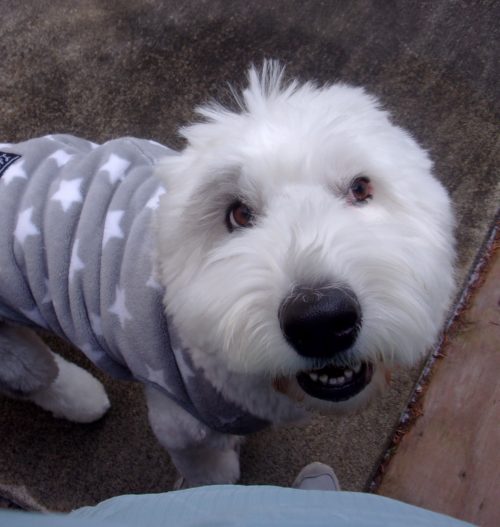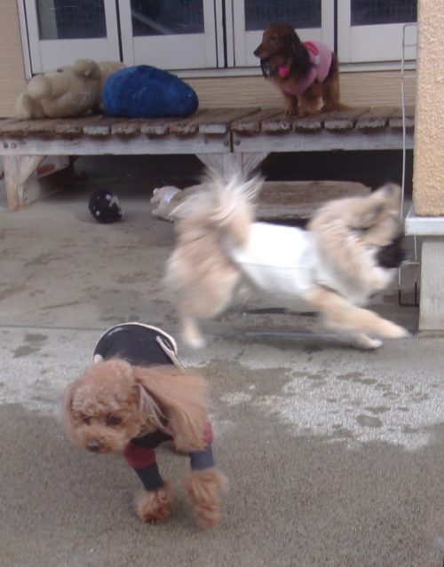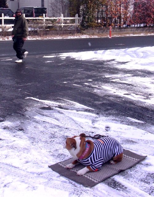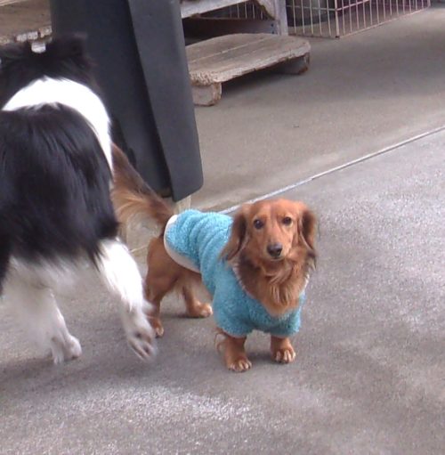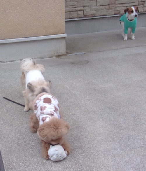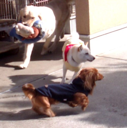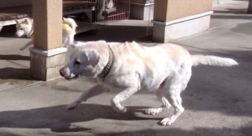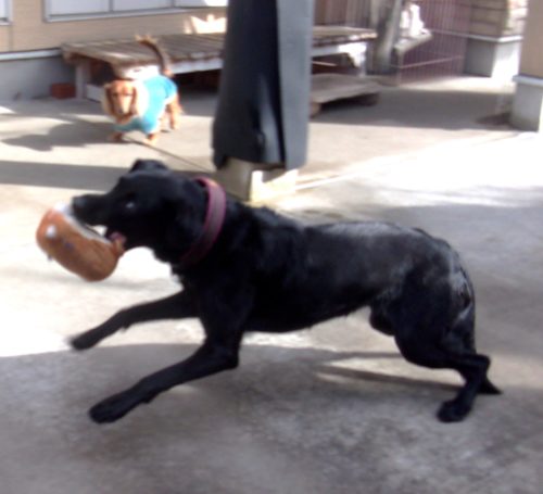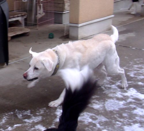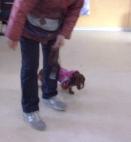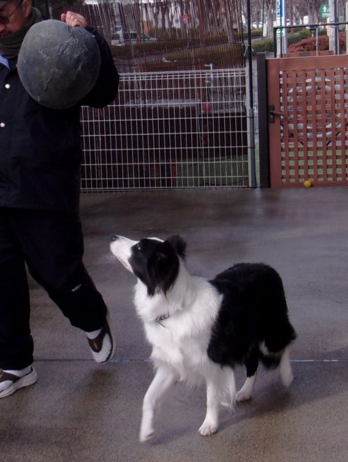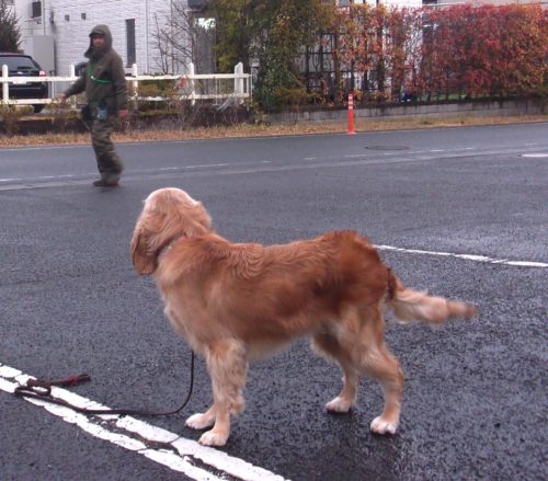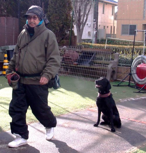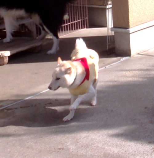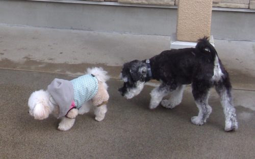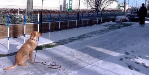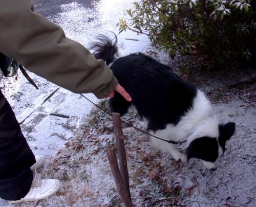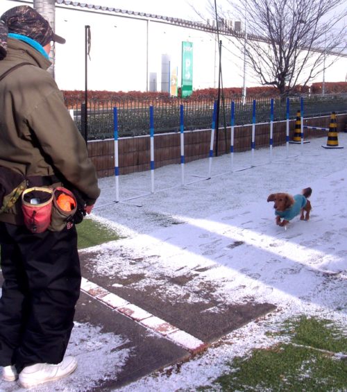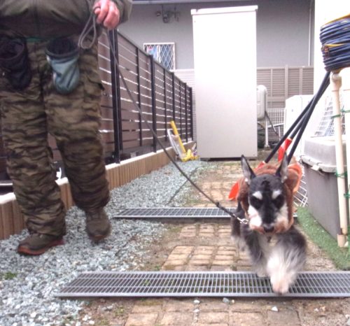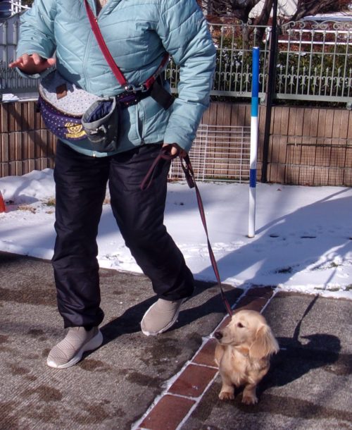 「にっこ」(地面の匂いを嗅いでいいよ)!