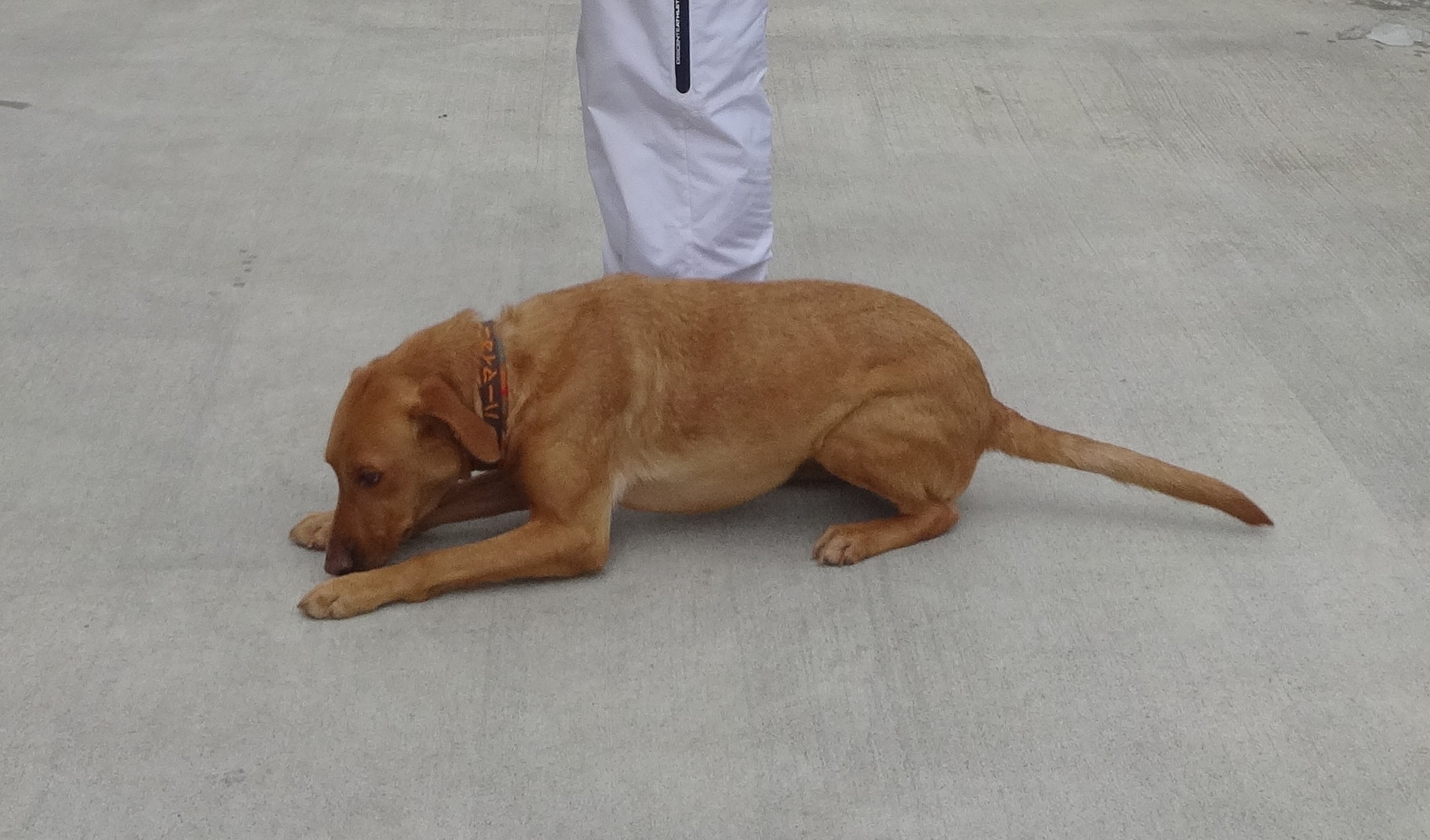 オレオ 駐車場で行進中同一方向の伏せ!