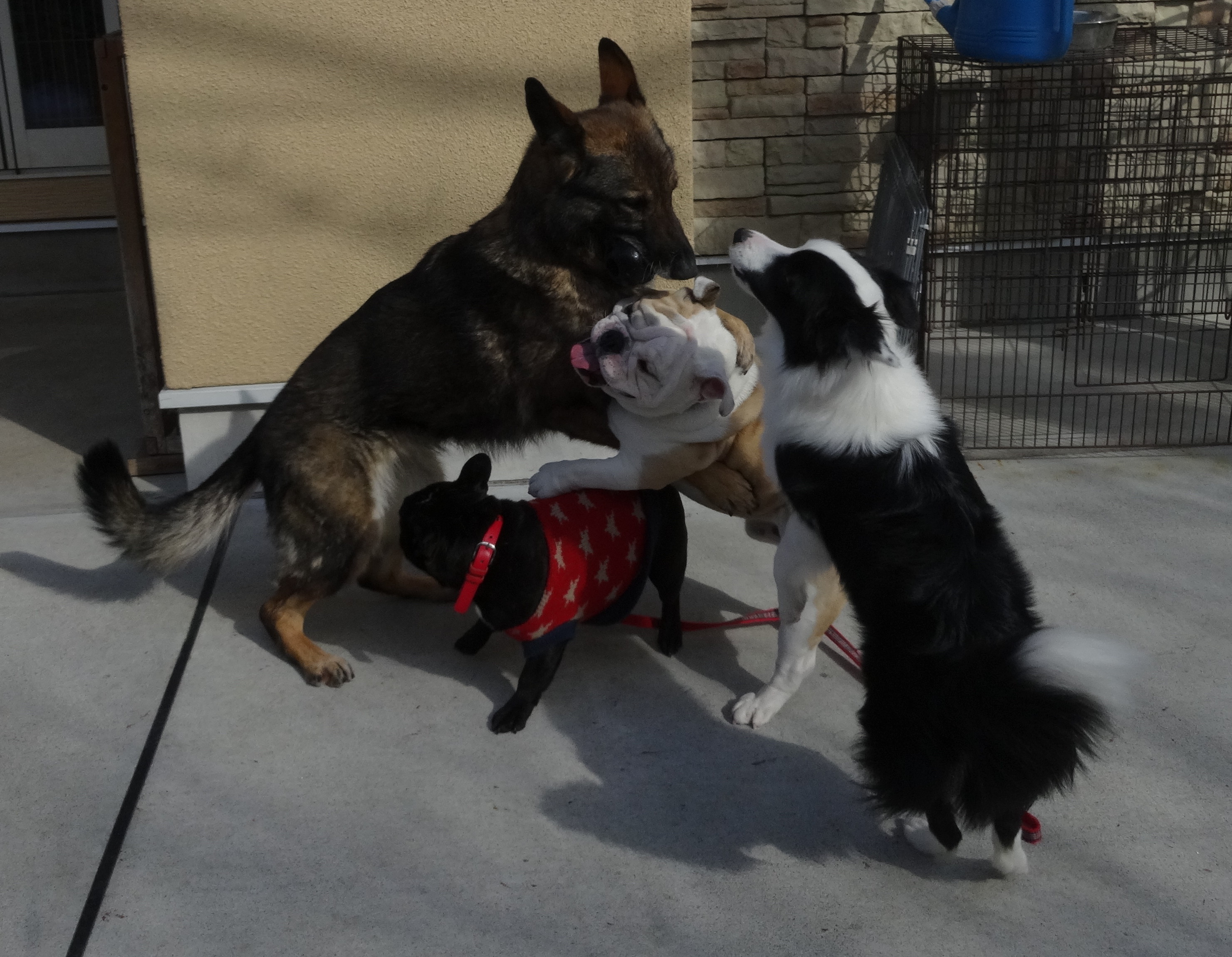 犬の三重連!コロスケ君&ミロちゃん!