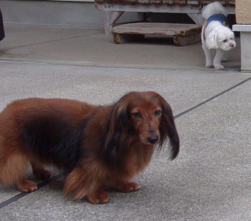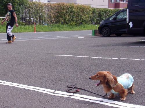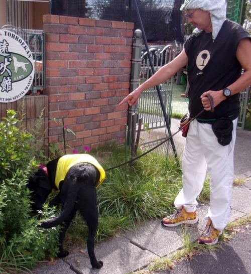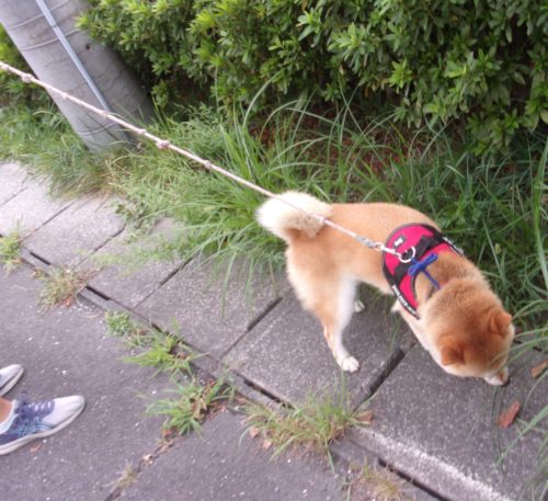 「にっこ」(地面の匂いを嗅いでいいよ)!